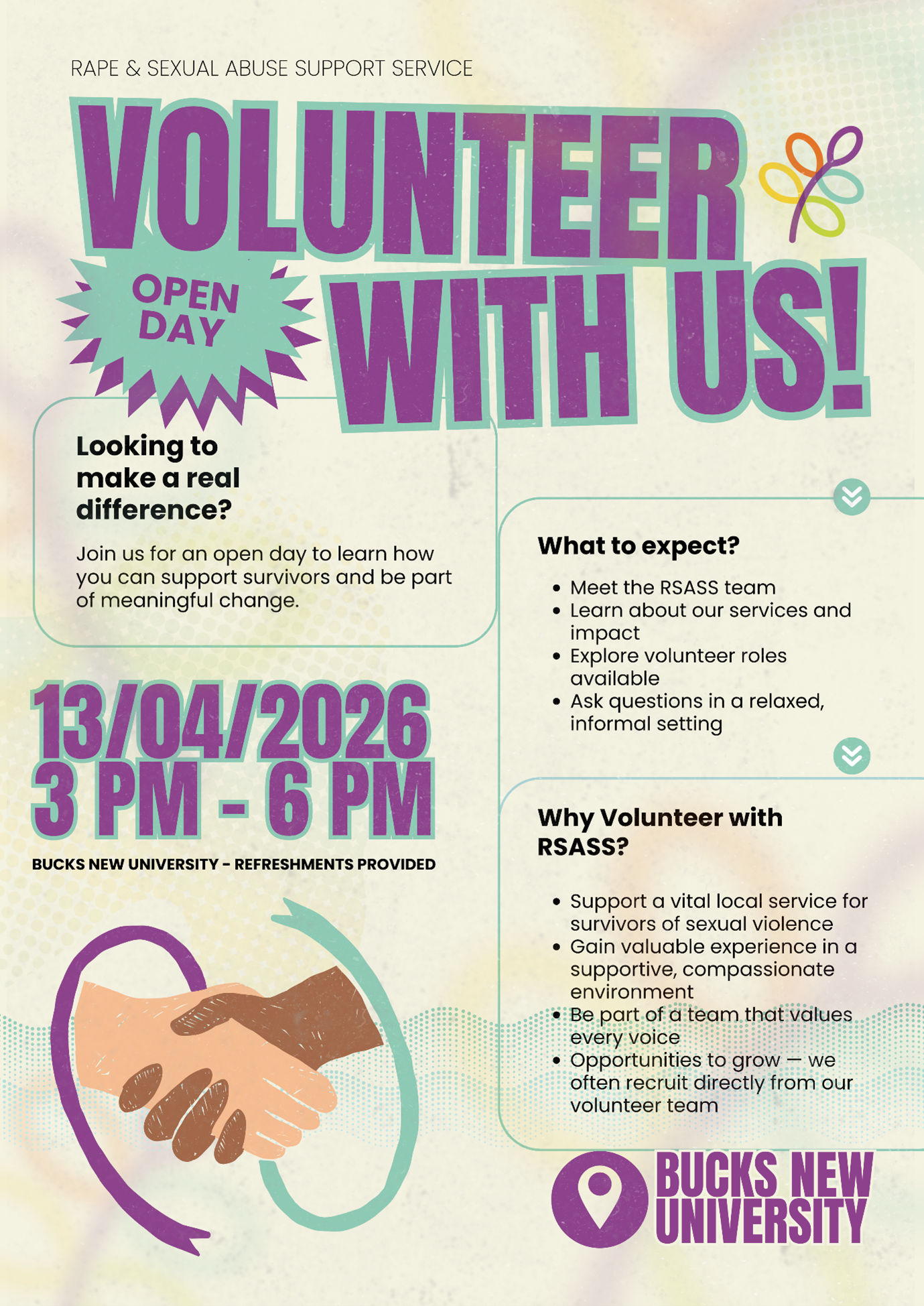 Scan me or visit www.volunteerbucks.org.uk/o/RSASS-Rape--Sexual-Abuse-Support-Service/opportunities/RSASS-Volunteer-Open-Day/115439 to join